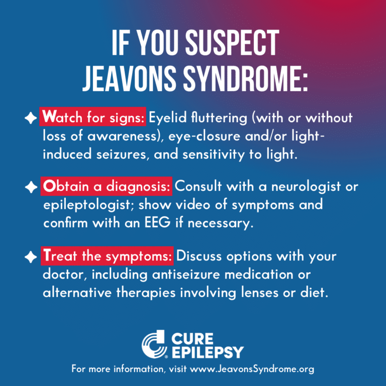 On behalf of the Jeavons syndrome community, CURE Epilepsy is partnering with RARE-X, a nonprofit organization dedicated to finding a cure for rare syndromes and conditions. Due to the rarity of EEM, health data that can be used for research into the condition is scarce. The Jeavons Syndrome Patient Health Data Collection Program aims to compile data from patients across the world to better inform researchers on EEM and accelerate progress on new treatments. This program may eventually give patients the opportunity to participate in clinical trials.