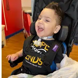 We were told on October 27, 2019, that he had bi-lateral vocal cord paralysis and he would need a tracheostomy, Bradley received his trach on October 29, 2019, he had his first seizure in September 2020, He had his first 48 hour EEG in October 2020, we were told he was at risk for severe CP (cerebral palsy) in April 2020, He was diagnosed with LGS (Lennox Gastaut Syndrome) in February 2021, then Bradley was officially diagnosed with HIE in October 28, 2020. When Bradley was officially diagnosed with HIE and the Dr. showed me and dad his brain MRI at 12 days old, we were told that it was clear he had severe brain damage and that should have been caught while in the NICU. I cried of life in the unknown when it came to Bradley’s diagnoses and when we found this support group in HIE, we as Bradly’s parents have been able to find comfort in this support group when it comes to different questions about Bradley’s future.